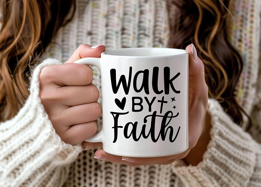Christian coffee mug Walk by Faith Christian art